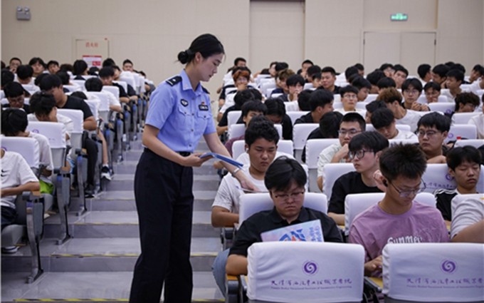 日前,津南法院司法警察大队干警走进校园为天津滨..